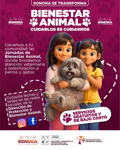 Cuidarlos es cuidarnos todos. El Gobierno de Sonora lleva directamente a tu comunidad las Jornadas de Bienestar Animal, ofreciendo atención veterinaria completa y servicios de esterilización gratuita para perros y gatos, promoviendo así la salud y el control responsable de mascotas en todo el estado.
