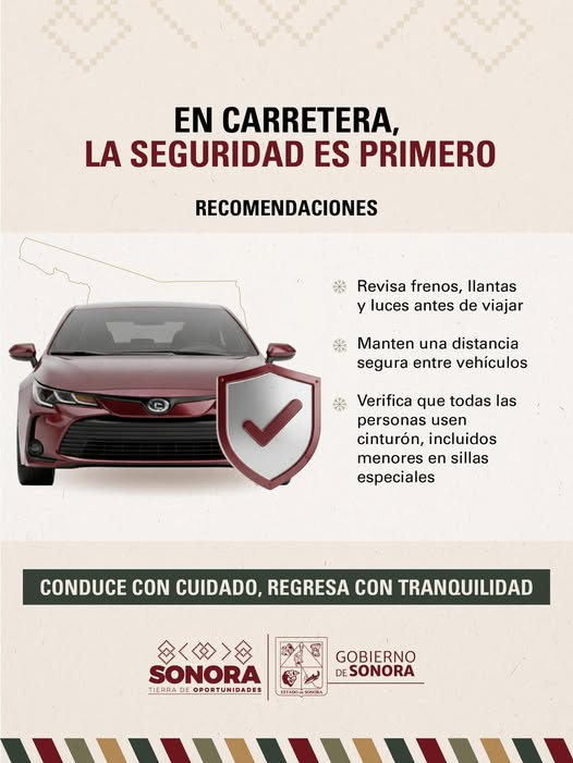 En estas fiestas, el Gobierno de Sonora recuerda que lo más importante es regresar a casa con bien, por lo que hace un llamado a la ciudadanía a priorizar la prevención y el autocuidado.